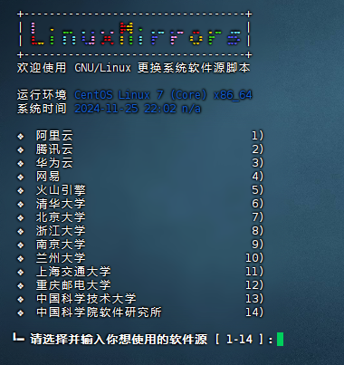 bash <(curl -sSL https://linuxmirrors.cn/main.sh)
